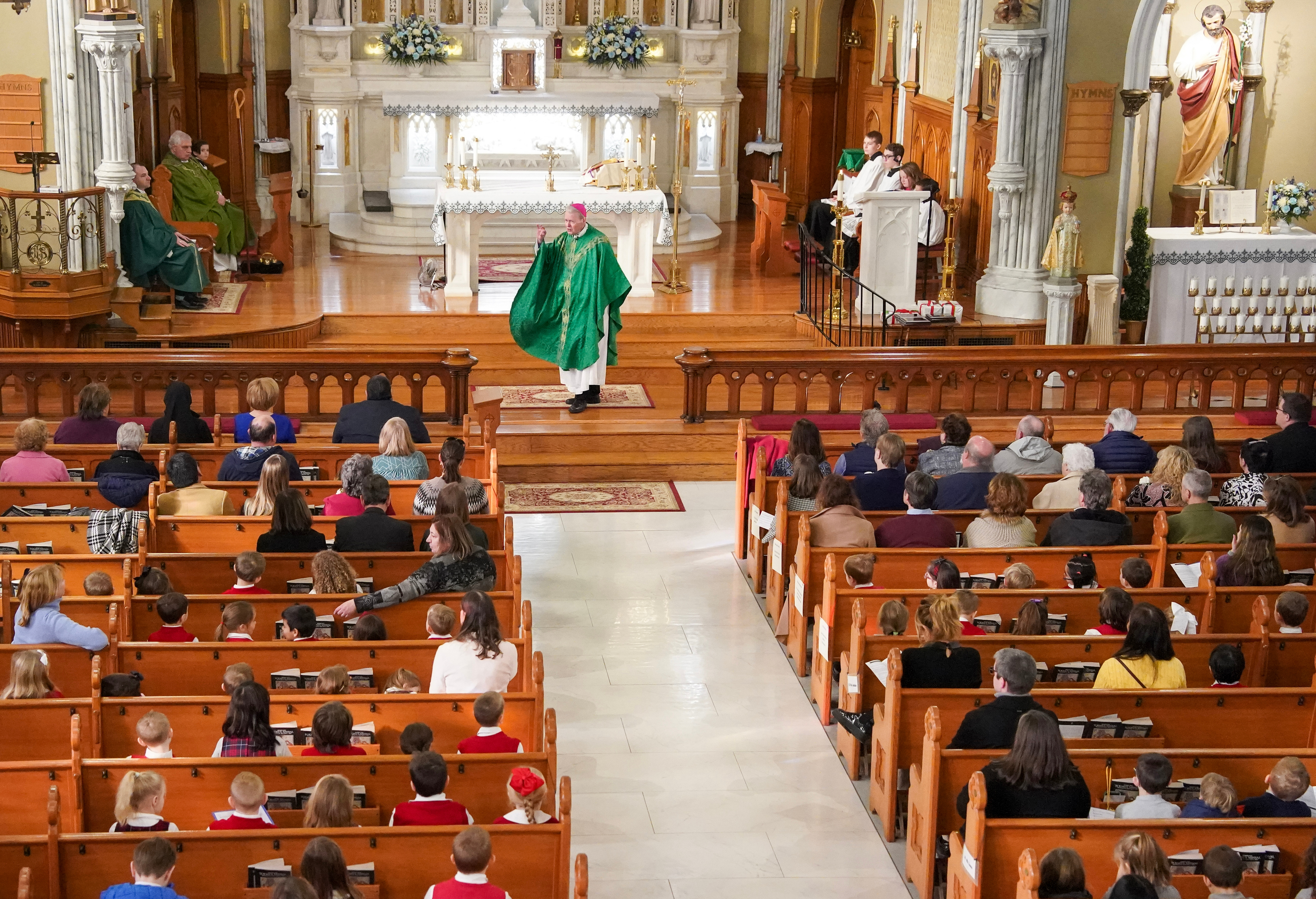 Bishop Scharfenberger delivers the homily during the Albany Diocesan Catholic Schools Mass on Feb. 10, 2022, at the Cathedral of the Immaculate Conception. ...