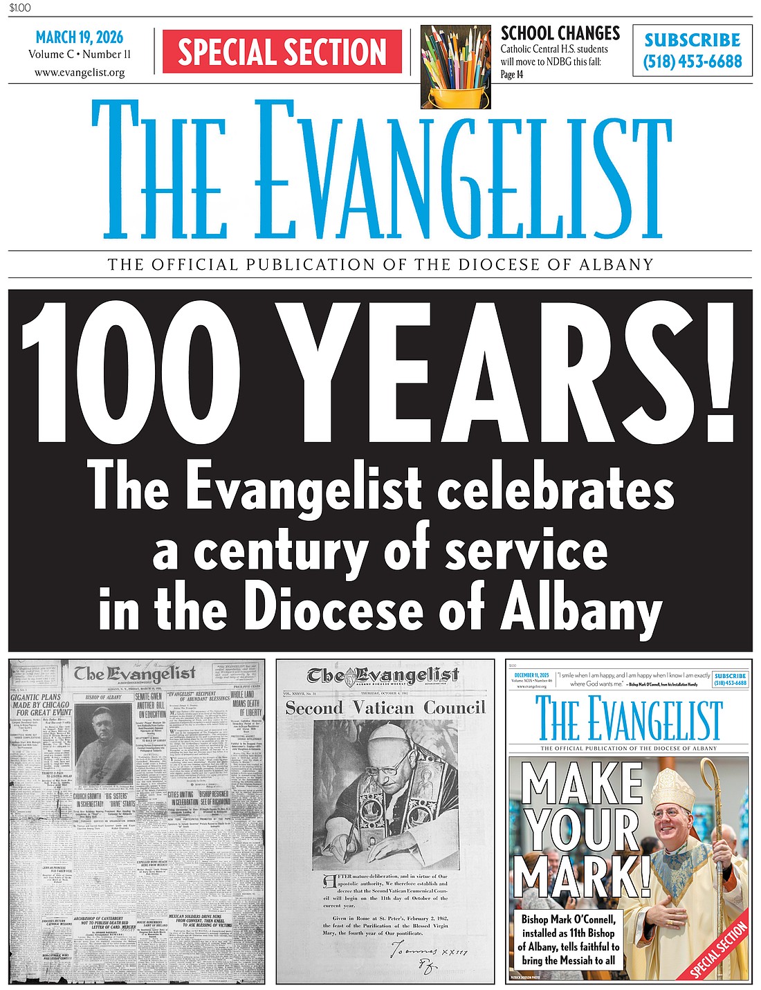 “As the eleventh Bishop of Albany, I stand in a long and cherished line of bishops who have partnered with The Evangelist to deliver trustworthy, faith-filled Catholic news and perspectives to the people of our Diocese,” Bishop Mark O’Connell said. “This newspaper has faithfully served as a vital voice of the Church in our region for a full century, illuminating the Gospel amid the joys and challenges of daily life. I look forward with gratitude and hope to collaborate with the dedicated staff of The Evangelist as we embark together on the next 100 years of proclaiming the Good News and fostering a vibrant Catholic community.”
