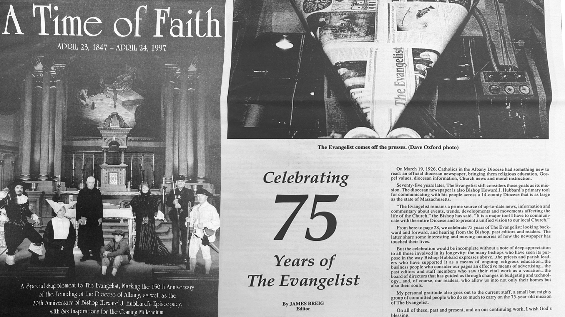 “Wherever did the last 100 years go? People my age are prone to reckon time in decades, not years. ‘A couple years ago’ is seldom less than two, though the event recalled might seem to have happened yesterday,” Bishop Emeritus Edward B. Scharfenberger said. “As we celebrate the centennial of The Evangelist under the sponsorship of the Catholic Press Association, humility and candor demand that, ancient of days though some of us may be, none are old enough to remember all the history that has formed us. The recorded annals of The Evangelist will serve to remind us.