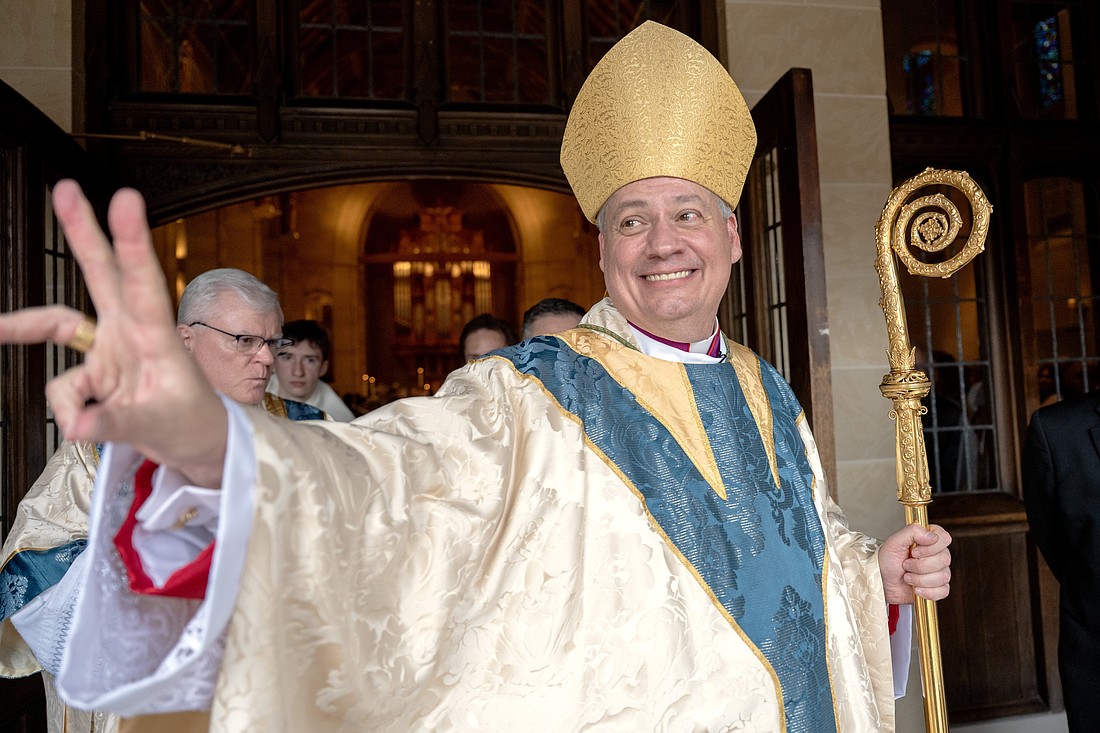 The bulk of the bishop's homily focused on his longtime adherence to what he calls "the four Ls": listen, learn, love, live.
