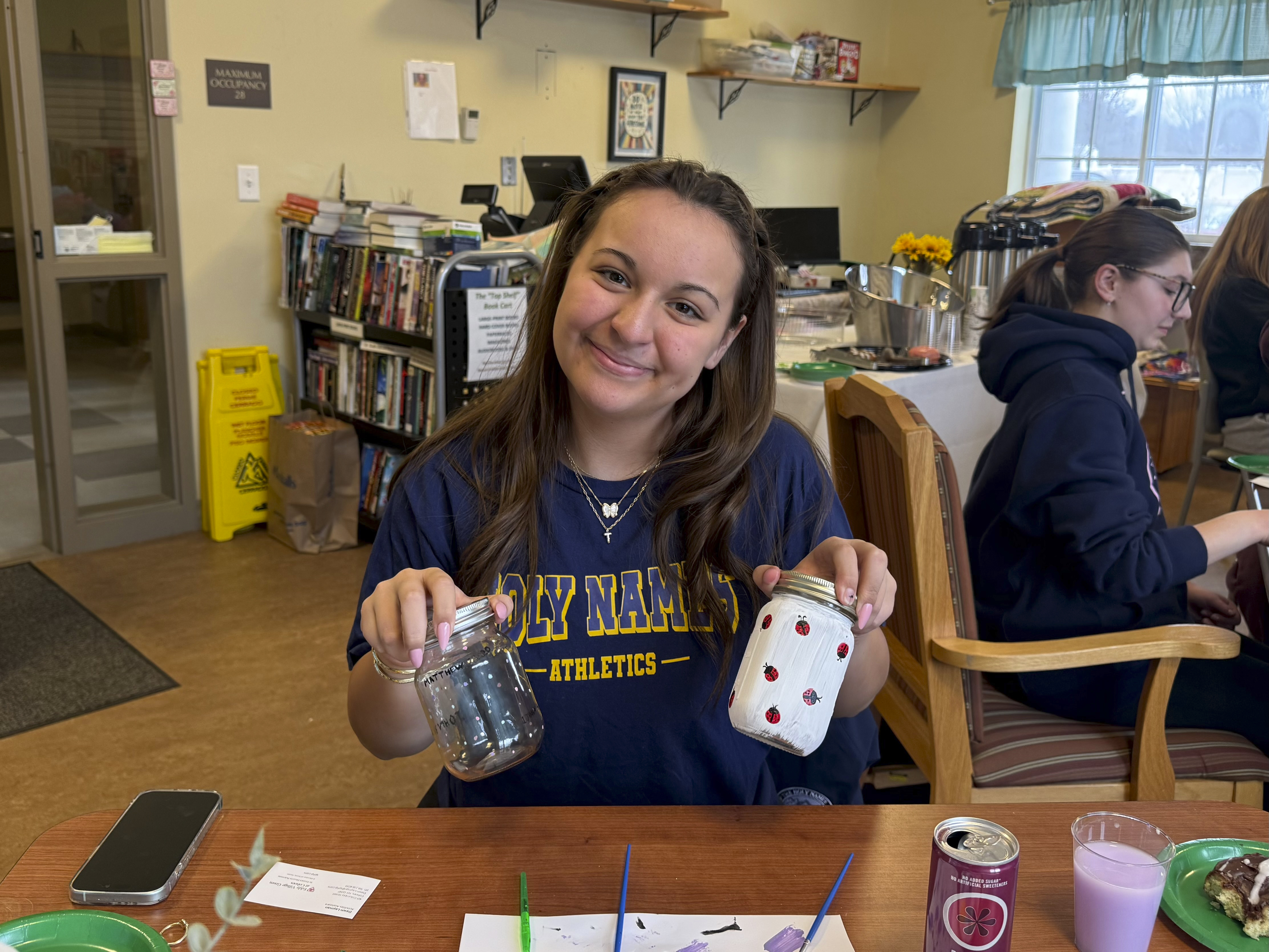 The following activities took place at Holy Names: Christ Child Society, donating diapers and learning about what Christ Child Society offers new mothers in need; Interfaith Partnership for the Homeless, making and delivering bagged lunches for the guests at the shelter; and Our Lady of Mercy Life Center, painting flowerpots and potting plants for seniors.